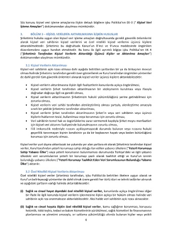 düzenlemelere uygun hareket etmektedir. Bu konu ile ilgili ayrıntılı bilgiye işbu Politika’nın EK 4